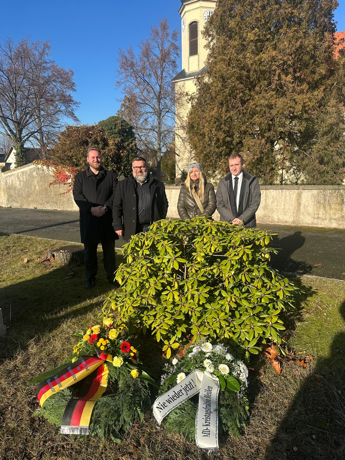 An den Gedenkveranstaltungen nahmen unter anderem der Landtagsabgeordnete Carsten Hütter, der Bundestagsabgeordnete Christian Reck, die AfD-Kreistagsfraktionsvorsitzende Petra Stoll sowie der stellvertretende Fraktionsvorsitzende Enrico Barth teil.